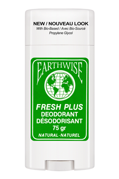 - Earthwise Fresh Plus Natural Deodorant is made from bio-based (vegetable) propylene glycol and free of aluminum, parabens, triclosan and colourants